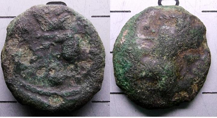 Generally speaking the soil PH is such that bone does no survive the acidic soil; the exception to this is where bone has been trapped within the dry cavities between the dry flints whilst being dumped in the ditches, I have some well persevered animal bone plus some snail shells. Identification of the snail shells could give an indication of the environment at the time of the ditch filling (snail experts please get in touch). Two interesting finds either side of the entrance were a small coin of the Celtic English King Cunobelin who ruled from the late first century BC until the 40s AD, the other was a simple late Iron Age pin brooch.