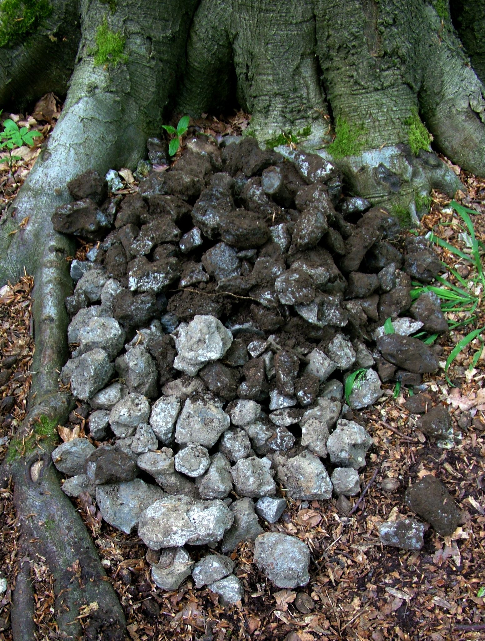 There are two distinct enclosures in the Wildwood and they are adjacent to each other, enclosure one is very different from the aforementioned enclosure two (RB) and is over 1000 years younger being dated 12th/13 century. There is still some speculation as to what this small moated site represents and recent finds may force a revision of my original thoughts that is was an animal enclosure. Excavation has ceased at the moment due to excessive wet weather but I still spend about 3 days a week with my two helpers Barrie and Phillip clearing bramble and the invasive holly from the areas close to the known archaeology. The best of the holly is stacked to season slowly as it will be used for woodturning, it is the whitest wood ever with a very fine grain.
